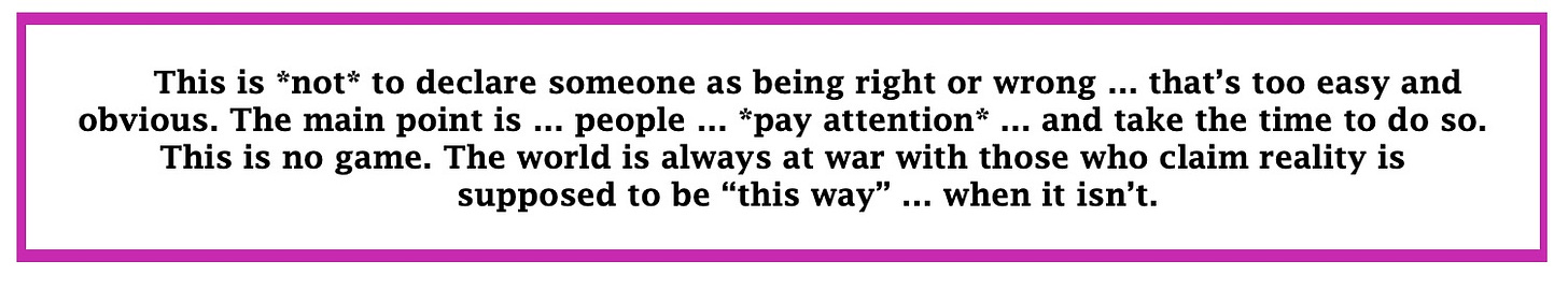 *If* you wish to be any kind of true spiritual student … you *cannot* succumb to this. It does not take a highly developed intellect to know what is going on around us. Any time the authorities declare issues such that … it makes no difference if you were born a male or female … you can claim the opposite and have it lived as a reality in our society … if the authorities can convince people of that … the masses are *well* on their way to being strongly controlled.