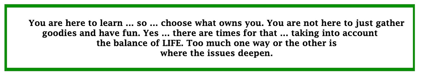 For those of you that have read a number of these posts … by now I hope that you are accepting that the mind is incredibly habitual … using the same patterns, stances, viewpoints, and perceptions to address all that happens around us. Not only are we our past lives … there are no genetic genes that coerce us to approach life the way we do … but our patterns are *so* much a part of us that we continue to bring them with us lifetime after lifetime until we revise or alter them.